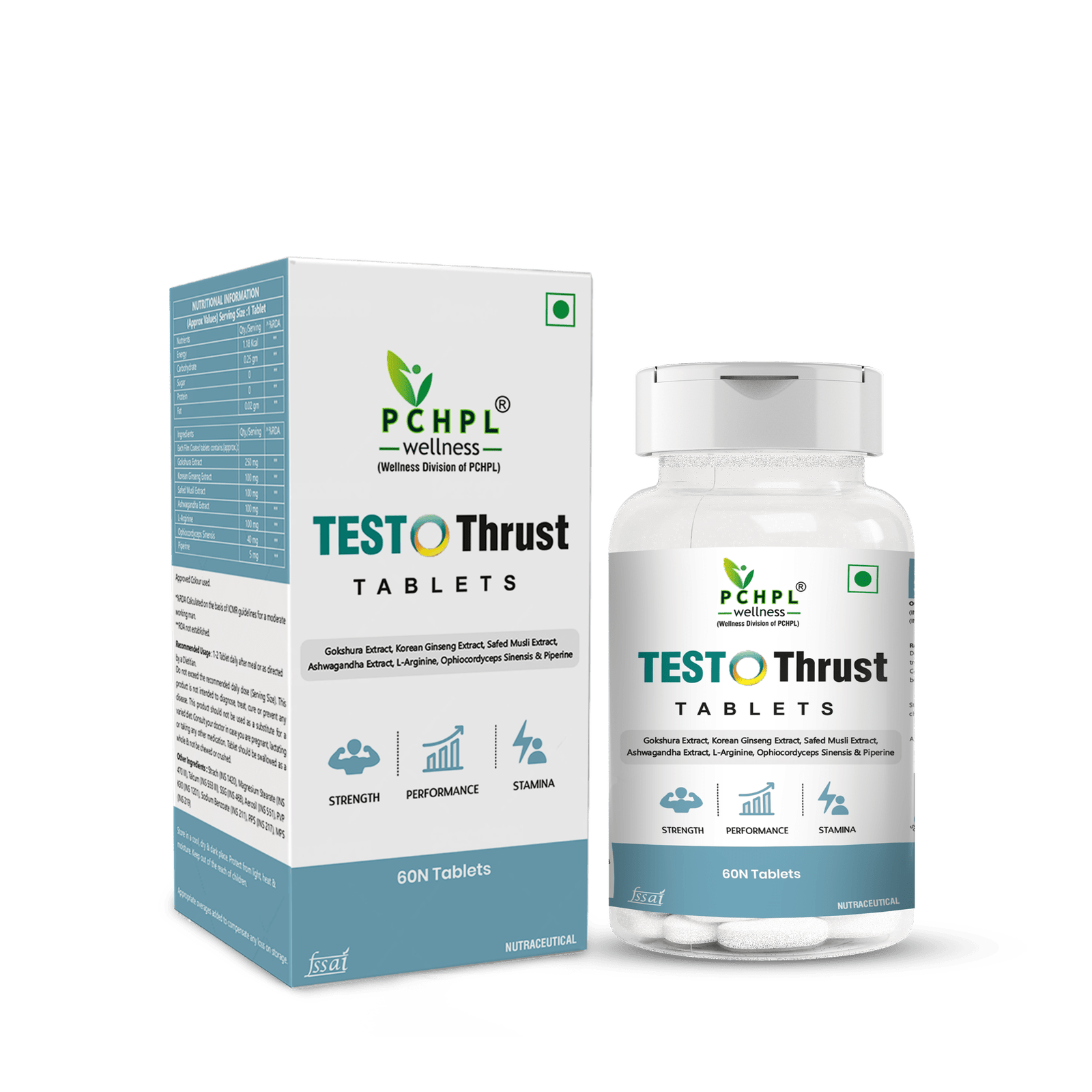 The combination of Gokshura Extract 250mg, Korean Ginseng Extract 100mg, Safed Musli Extract 100mg, Ashwagandha Extract 100mg, L-Arginine 100mg, Ophiocordyceps Sinensis 40mg, and Piperine 5mg is a powerful blend designed to enhance physical performance, energy, and vitality. Gokshura and Safed Musli support male health and stamina, while Korean Ginseng boosts energy, reduces fatigue, and improves mental clarity. Ashwagandha helps reduce stress and improve overall endurance, while L-Arginine promotes better blood circulation. Ophiocordyceps Sinensis supports stamina and immune function, and Piperine enhances the bioavailability of the ingredients, improving their effectiveness.